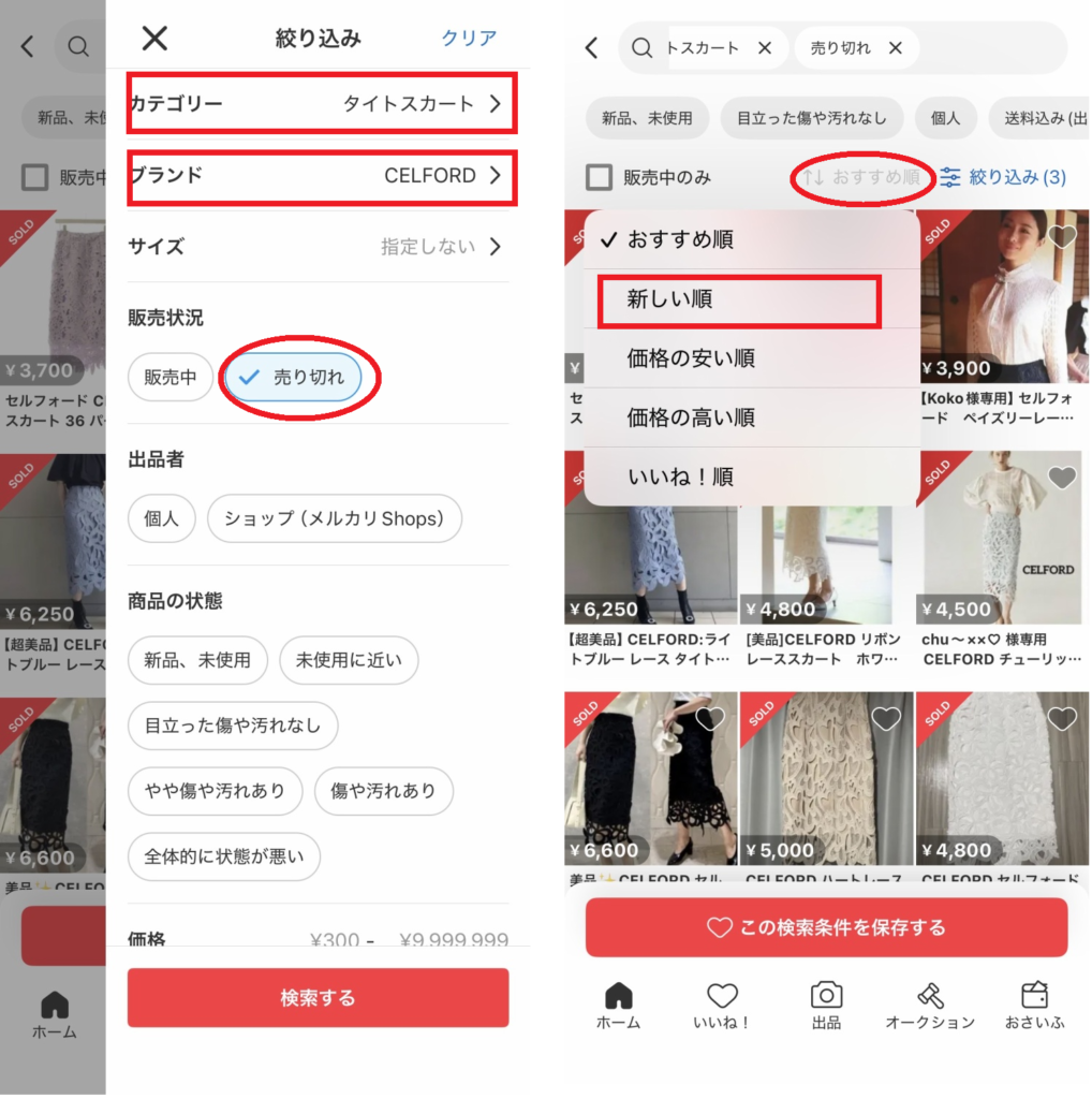 □メルカリで検索するとき、並べ替えを「新しい順」にして調べましたか?